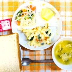 今日の給食は「沖縄料理」のジューシー、アーサ汁。定番メニューなので、子どもたちもよく食べてくれています。 そして、今日はぱんだ組さんで「調理保育」がありました。 保育園のおやつの中でも人気の … 続きを読む