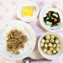 今日のメインは『豚丼』 菜種油で豚肉・玉ねぎ・小葱を炒め、三温糖・みりん・しょうゆ・酒でシンプルな豚丼です。 『酢の物』には、生わかめを使用しており、良い食感に仕上がりました。 今日の給食( … 続きを読む