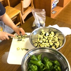 くま組さんで、ピーマンをたくさん収穫したので、お部屋でミニクッキング♬ 秋になると、中に芋虫🐛さんが入っていることも。先生は「虫さんが食べてるピーマンということは~・・・ほか … 続きを読む