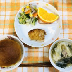 今日は、バンズパンに鶏肉の味噌焼きとサラダ菜をサンドした味噌チキンバーガー🍔 和食のときに提供している「鶏肉の味噌焼き」をパンにはさんでいます。幼児クラスはセルフでサンド、み … 続きを読む