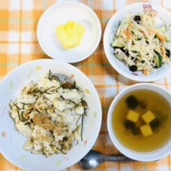 給食は沖縄料理「ジューシー」を取り入れたメニュー🌴。切り昆布、干し椎茸、豚肉、油揚げ、人参を甘めに炒め煮にして炊きあがったごはんに混ぜ込んでいます。昆布と豚肉のうま味でおいし … 続きを読む