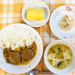 今日は、子どもたち(職員も)大好きなスパゲティミートソース。玉ねぎが挽肉の2倍以上!と、たっぷり入っていて、毎回玉ねぎの皮むきは子どもたちがお手伝いをしてくれています。 ミートソースには、た … 続きを読む