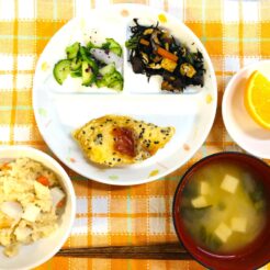 今日の給食は、2回目の登場「まぜまぜオムライス」 食べるときにチキンライスと炒り卵を混ぜて食べます🥚 オムライスを薄焼きたまごで提供していたことがありますが、乳児にはやや食 … 続きを読む