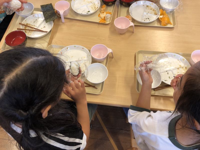 ラップおにぎりも、みんなとっても上手になっていました🍙
