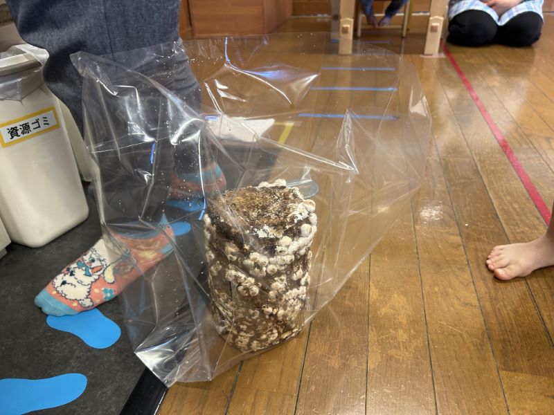 そして、うさぎ、ぱんだ組さんでは、シイタケ栽培🍄スタートですョ。