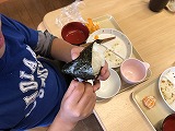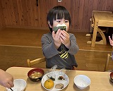 そのままお部屋でごはんを炊いて、炊き上がる匂いや炊きたてごはんの味を楽しみました🍚 ラップおにぎりデーでしたので、炊き立てのごはんでおにぎりづくり🍙。炊き立てのごはんはおいしいですね。