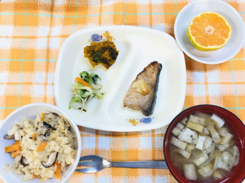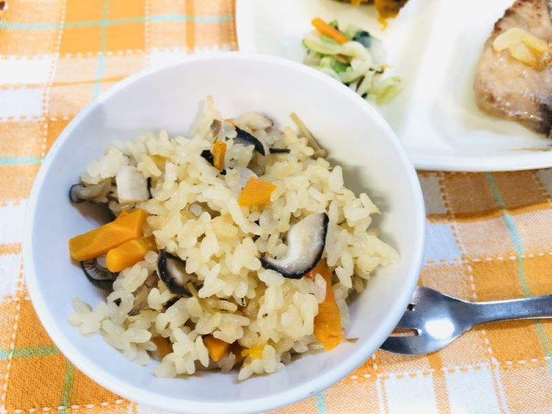 今日の給食は、きのこたっぷりの炊き込みご飯🍄 秋らしいごはんの登場です。