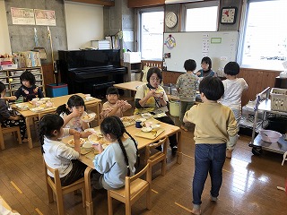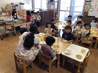 ぱんだ組さん、おかわりタイム。みんなよく食べていましたね。