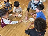 給食の先生からお話を聞いてから、もやしポキポキのスタート!