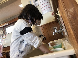 今日は、調理保育の前にお米とぎをして、先にごはんの準備です。給食室でも同じように、はじめにお米をといでお水につけていますョ。