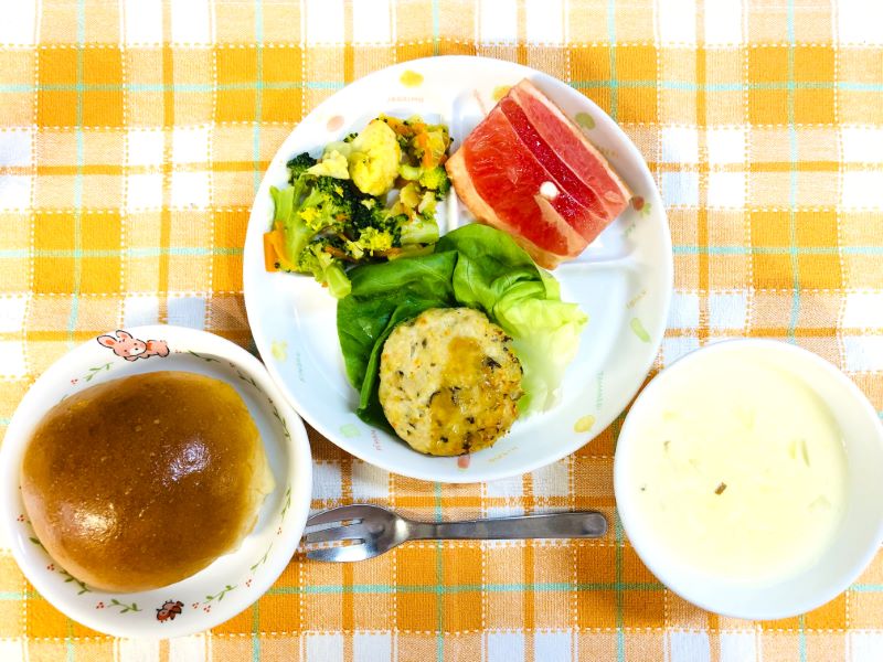 サラダ菜をつけているので、幼児クラスはセルフでつくねサンドを楽しんでいましたね。