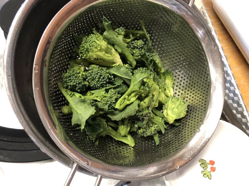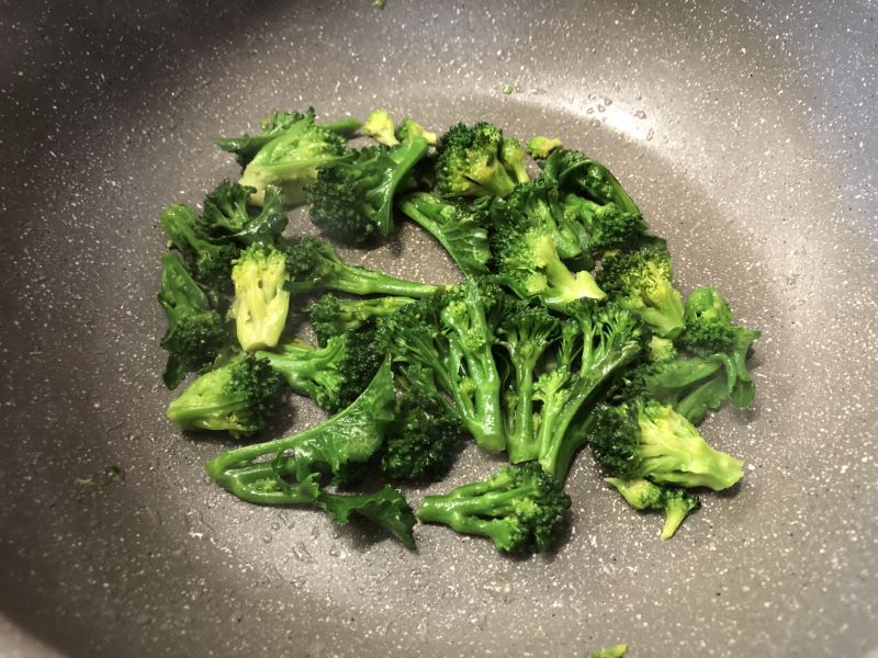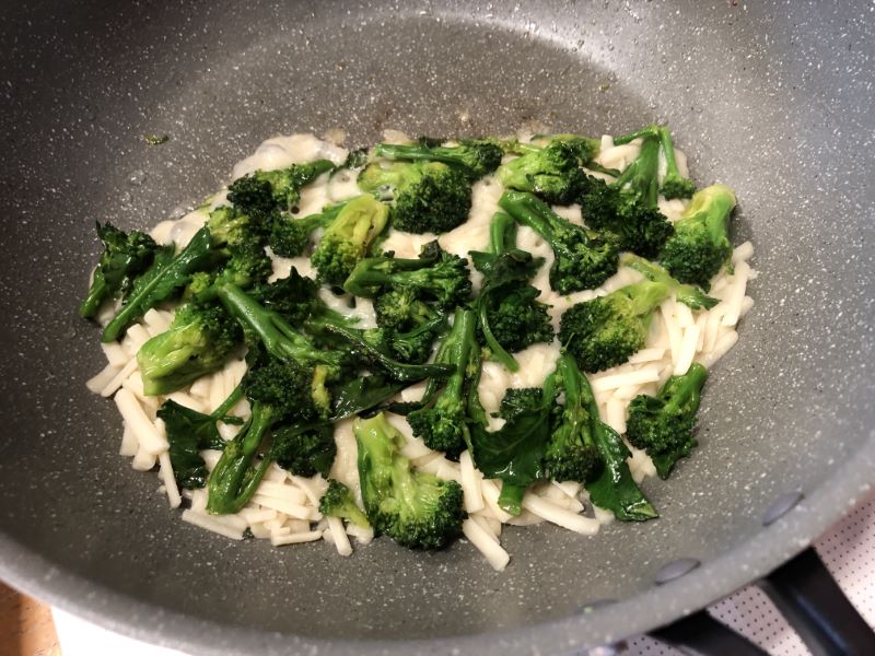 フライパンで蒸し焼きにしてから、豆乳チーズを少し溶かしたところに🥦のせて、こんがり焼いて「チーズ焼き」のできあがり🎵