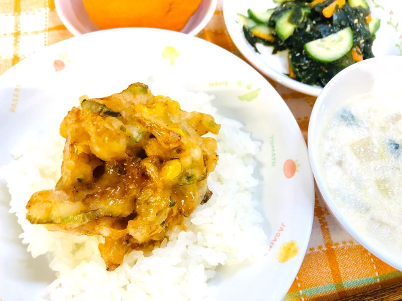 今日は、甘めのタレでごはんがすすむ、かき揚げがど~んとのった「かき揚げ丼」🍚