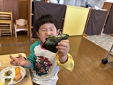 三角おにぎり、まん丸おにぎり、大きなのりを巻いて「おもちみたい!」楽しみながら食べていましたね