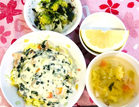 今年のらいおん組さんからは、和食のリクエストが多かったのですが、クリームライスとイタリアンスープもリクエストメニューに入っていたので取り入れました。