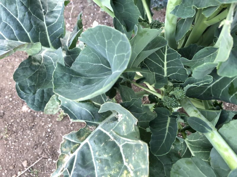 菜園ののらぼう菜と、スティックセニョール🥦 寒い中でも少しずつ花蕾が大きくなっています。