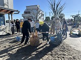 保護者の方が順番におもちつき! はじめのコネコネ、力が要ります💦
