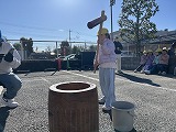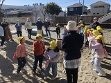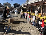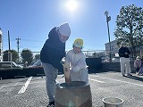 子どもたちは、寒い中でしたがぺったんぺったん、一生懸命おもちつきをしました。