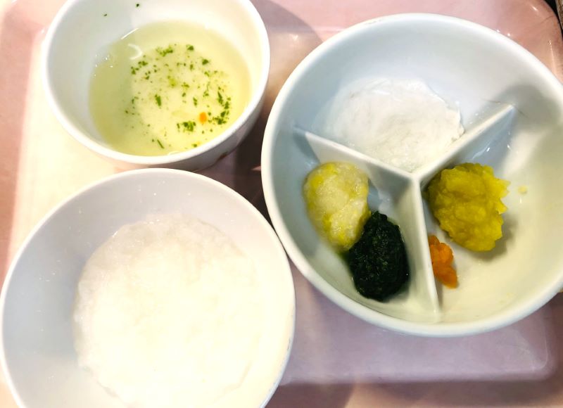 粥、すまし汁、煮魚(タイ)トロトロ煮、