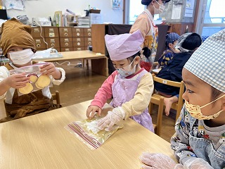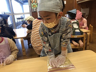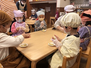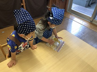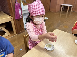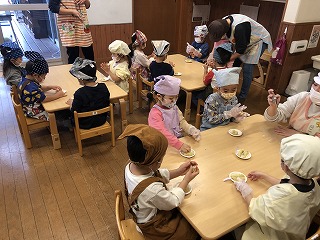 そして、今日はぱんだ組さんで「調理保育」がありました。