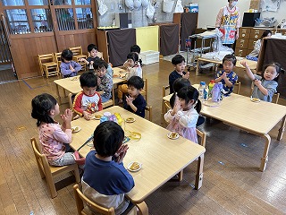 そしてみんなで「いただきます!!!」 いつものおやつの味、自分で作った満足感。もっと食べたい!
