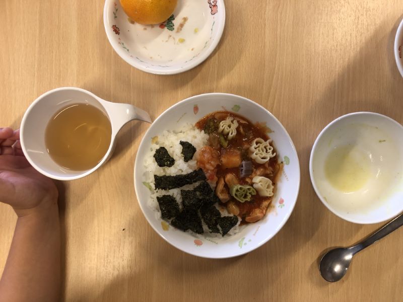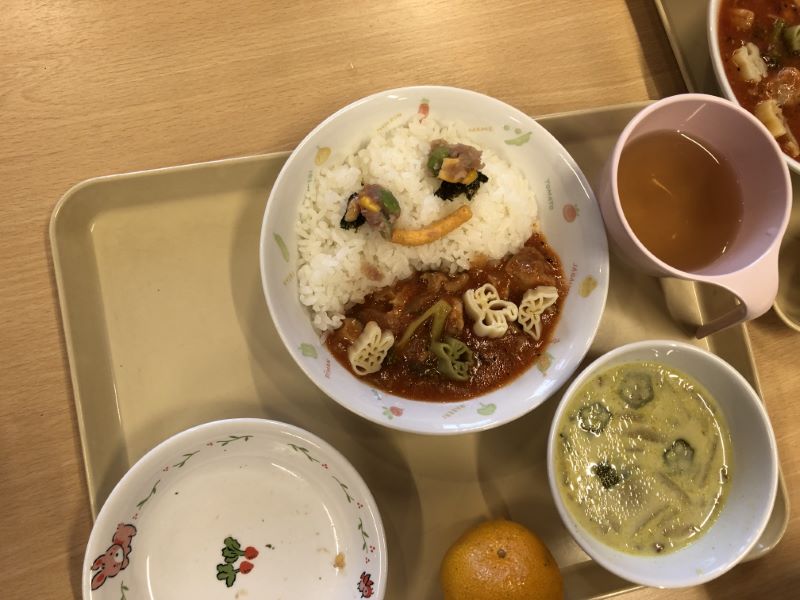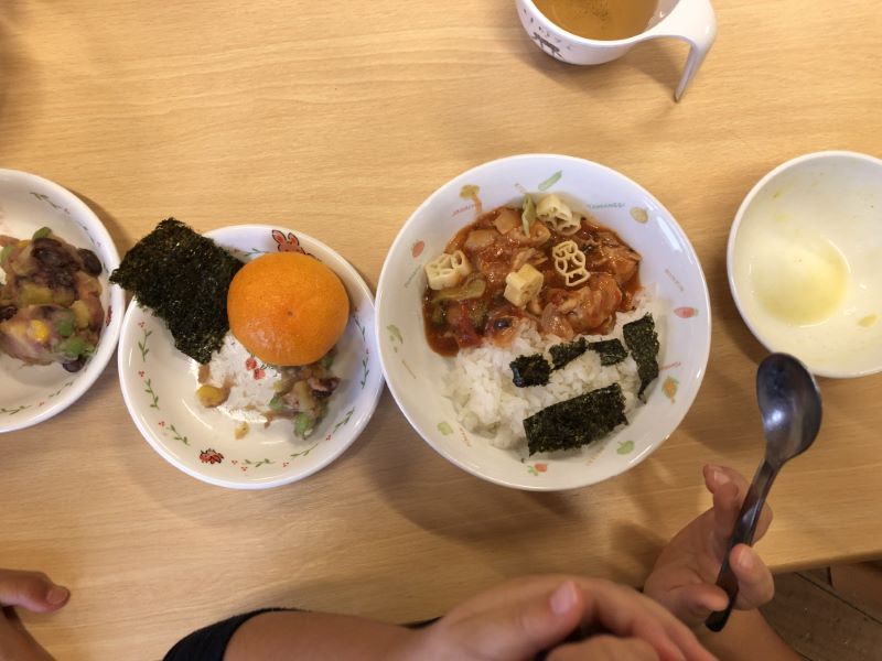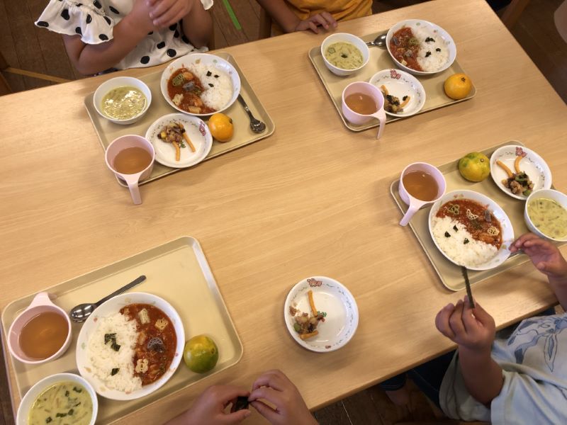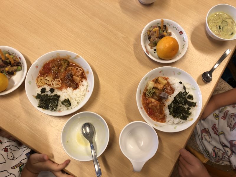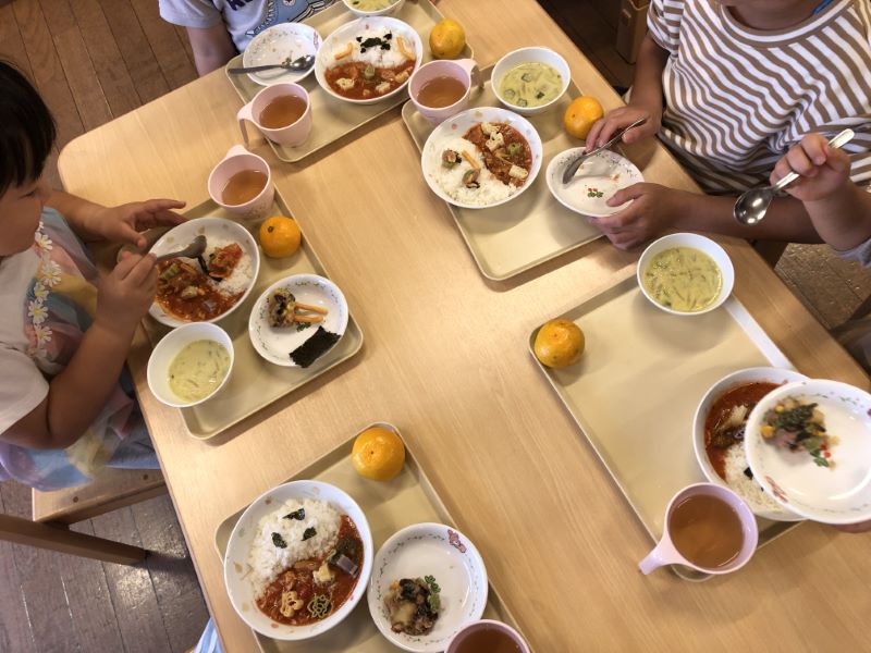ちなみに、乳、卵無しのアレルギー対応。幼児クラスは、みんな一緒に楽しめる給食メニューになっています。