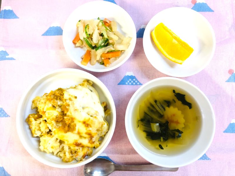 今日の給食は「カレードリア」子どもたちもよく食べていましたね。