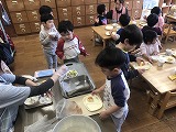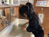 明日はおもちつき。くま、らいおん組さんで、おもちに使う「もち米」のお米とぎをしました。おいしいおもちになりますように★