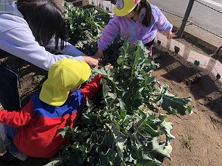 ぱんだ組さんで、スティックセニョールを収穫してきたので、お部屋で茹でて、ハート型のごはんに添えて食べました。🥦とれたてはおいしいね!