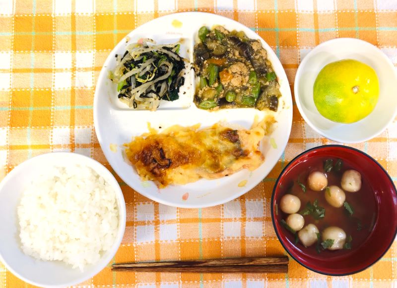 今日の給食は和食メニュー、なのですが、洋と和を合わせた味噌チーズ焼きです。鮭に味噌、砂糖、みりんで作った甘味噌ダレをつけ、ピザチーズをのせて焼きいています。味噌とチーズ、どちらも発酵食品で相性は抜群!ごはんにもパンにも合う1品です。